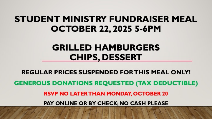 10/22/25 STUDENT MINISTRY FUNDRAISER MEAL